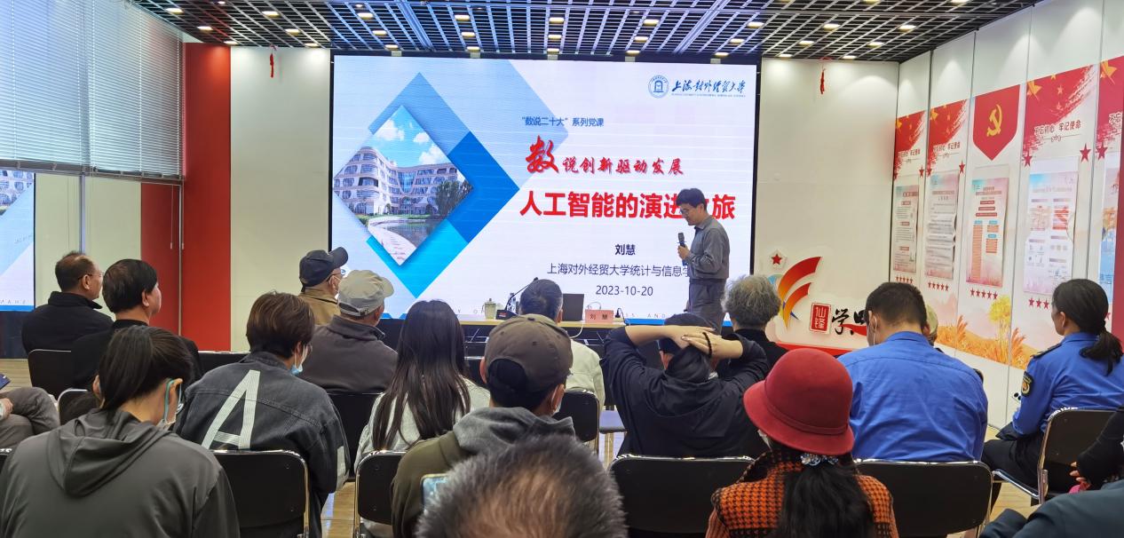 10月20日,受长宁区仙霞新村街道党群服务中心“仙锋学思汇”邀请,必赢626net入口首页统计与信息学院“数说二十大”系列党课再次走进仙霞新村街道社区党群服务中心,学院计算机与人工智能系刘慧副教授为街道机关党支部、直属党支部和“两新”党组织党员代表、驻区单位代表、居民区二级党支部书记代表等做题为《数说创新驱动发展——人工智能的演进之旅》的专题党课。街道60余名党员参加了此次活动。