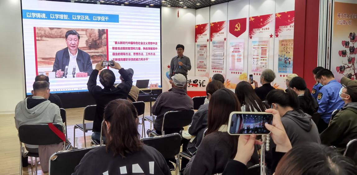 自2022年以来,必赢626net入口首页统计与信息学院党委创新“党的创新+学科专业”模式,打造“数说中国”理论学习平台,组建了师生理论宣讲团,把“数说二十大”系列党课送到大中小学、企业课堂、社区课堂和田间地头,累计开设党课30余场,辐射数千人次,已经成为极具学校特色、有广泛影响力和辐射力的党的创新理论学习教育品牌。未来学院党委将继续加强与街道社区的党建联动,通过大学教师进社区送党课,以数字化的方式持续为新时代党员教育赋能,营造共学、共研、共进的党建氛围。