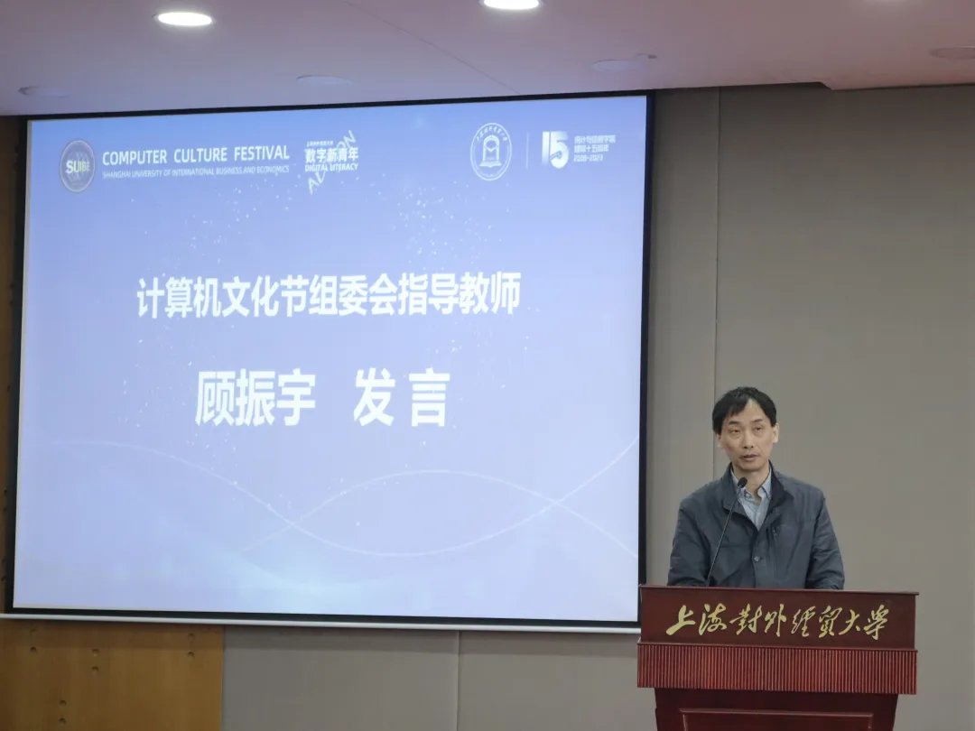 顾振宇回顾了往届计算机文化节各项赛事概况,对学生们的优异表现给与了肯定,并对学生如何参加计算机应用能力大赛进行了指导。