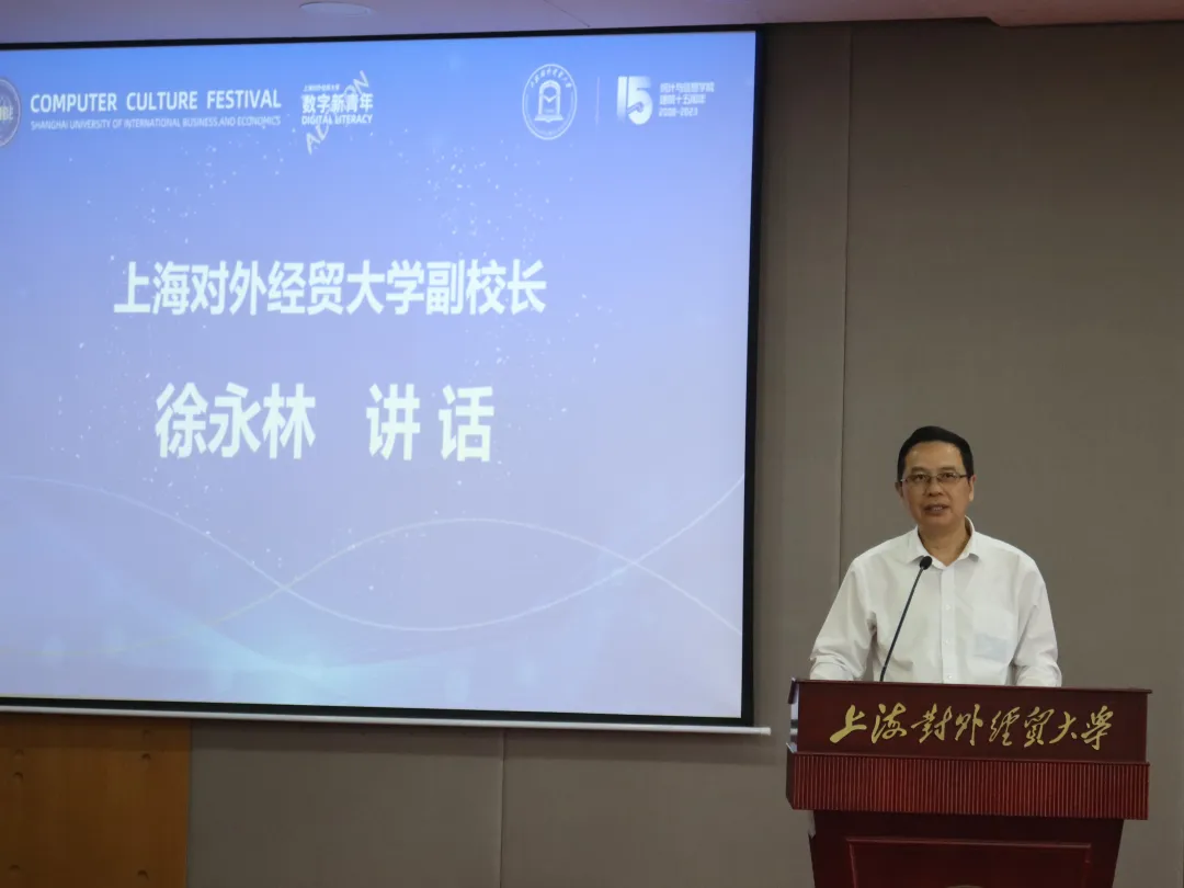 开幕式上,徐永林副校长向第十六届计算机文化节的顺利举行表示热烈祝贺,向参与此次活动组织和筹备工作的老师和同学表示衷心感谢。他指出,学校计算机文化节围绕新时代数字技术和信息科技高速发展对人才培养的要求,搭建了一个青年大学生科技体验与实训的平台,计算机文化节连续开展了十六年,在活动内容与形式上不断丰富与完善,帮助学生不断提升计算机应用能力和数字素养,强化创新意识,提升综合素质,对营造注重科技创新的校园文化有着十分重要的意义。他希望同学们作为新时代青年,要勇于迎接挑战,夯实专业基础,为科技发展和社会进步贡献青春力量。同时,鼓励同学们积极参与此次计算机文化节各项活动和赛事,取得优异的成绩。