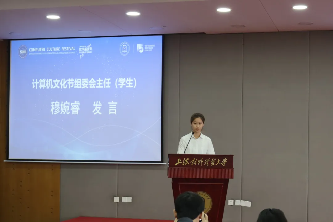 本届计算机文化节组委会主任穆婉睿同学介绍了计算机文化节的时间安排、竞赛项目、评审规则和创新之处。