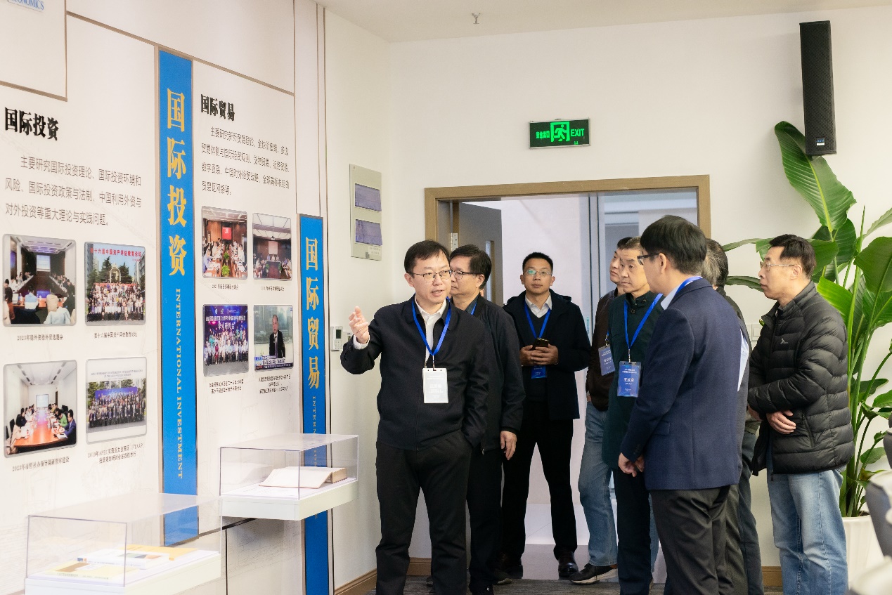 会前,汪荣明带领与会专家参观了学校智库中心——国际经贸创新与治理研究院。