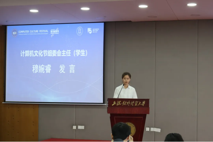 本届计算机文化节组委会主任穆婉睿同学介绍了计算机文化节的时间安排、竞赛项目、评审规则和创新之处。