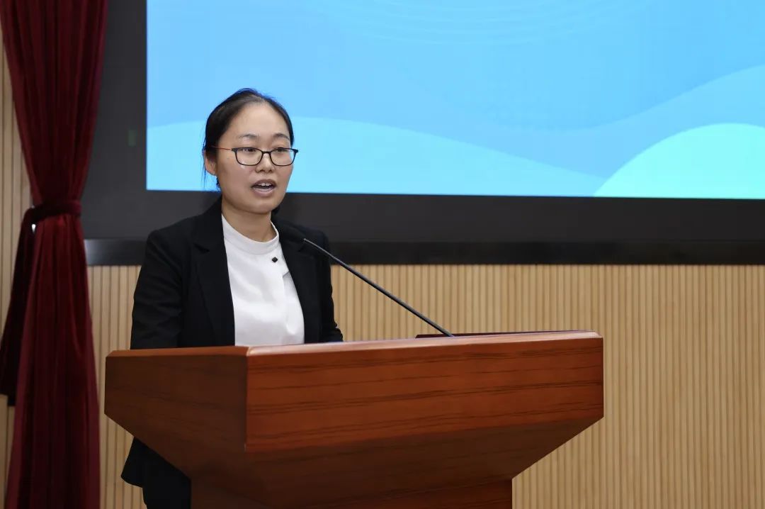 统计与信息学院应用数学系教工党支部书记李瑞囡作为指导教师代表发言。她回顾了连续参与五年项目的经历,对支持项目的领导、单位和师生表示感谢。她表示会继续带队学生,参加“访万企,读中国”社会调查项目,在社会基层一线、企业调查一线淬炼育人初心,教学相长,产出高质量成果,为服务中国式现代化贡献智慧和力量。