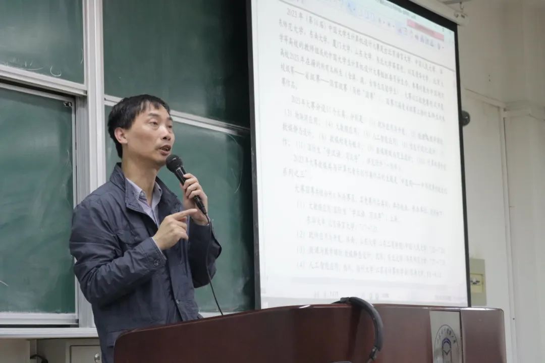 首先,顾振宇老师鼓励同学们要积极参加实践活动,主动提交作品,并叮嘱同学们注意截止时间,不要犯低级错误,听从指导老师的安排。同时,顾振宇老师向同学们展示了国赛官方的文件,详细介绍了国赛的11个大类,帮助同学们对国赛的选题有一个更好的了解,点明了“创作要有创新”的重要性。接着,顾振宇老师简单介绍了市赛的11个种类,并展示国赛、市赛的获奖名单,分别讲解了各个获奖作品的种类。最后,顾振宇老师再次鼓励同学们积极参与比赛,充分发挥自己的才华。