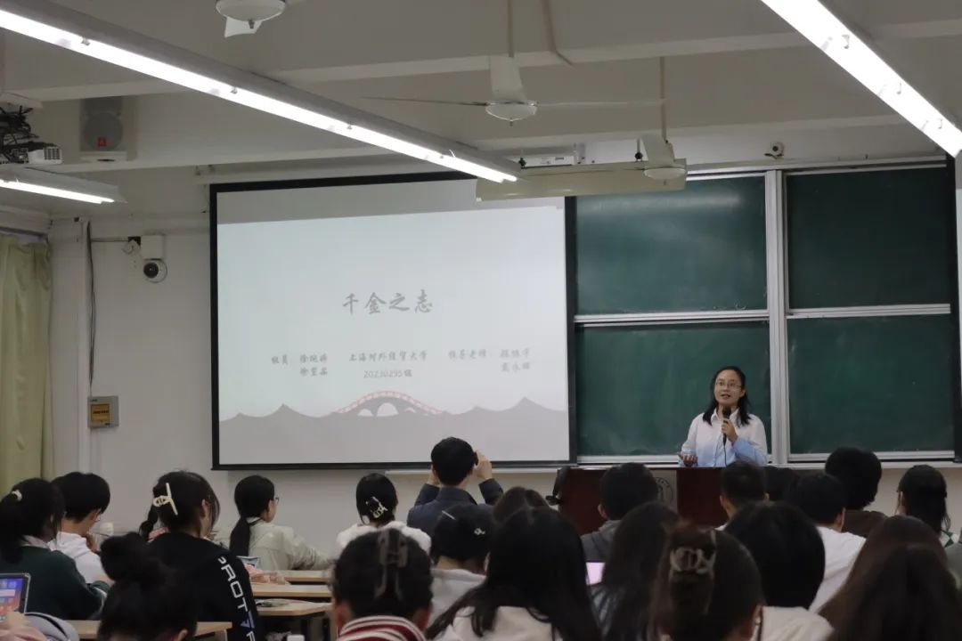 徐琬婷同学播放团队制作的视频,并分享自己团队的作品及其制作过程,主要介绍了建模的过程以及相关的方法和技巧。(《千金之志》)