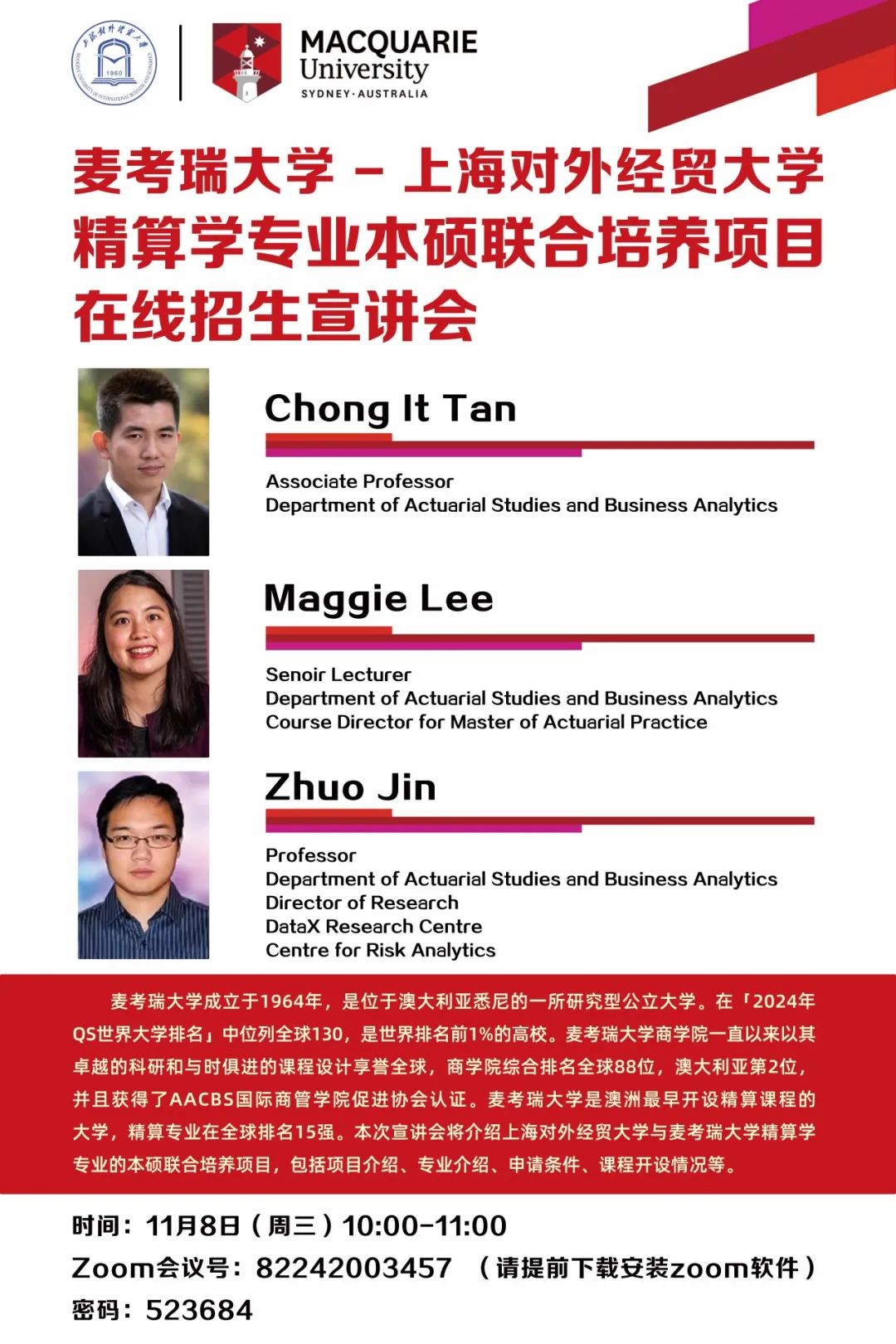 在线招生宣讲会|麦考瑞大学-必赢626net入口首页 精算学专业本硕联合培养项目