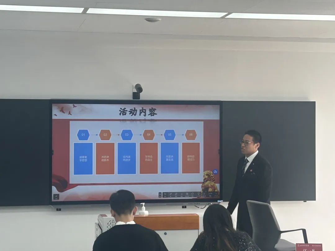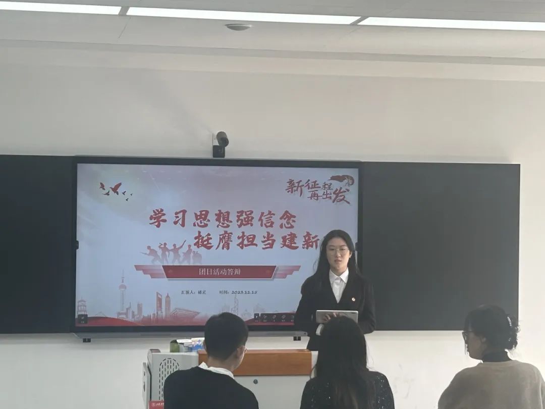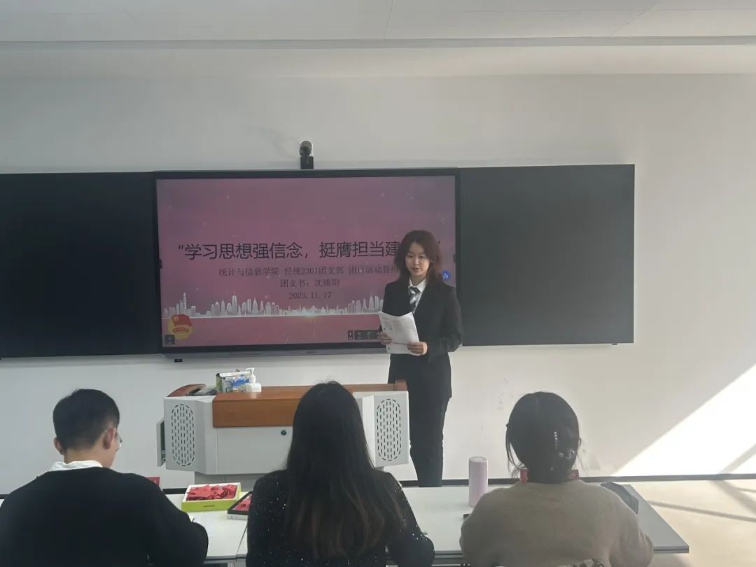 2023年11月17日,统计与信息学院“学习思想强信念,挺膺担当建新功”主题团日活动答辩会在学思楼D406教室举行。本次会议由统计与信息学院组织部李静瑜同学主持,学院团委书记岳怡寒、团委副书记彭鹏和校团委组织部负责人江一凡作为评委出席了本次答辩。