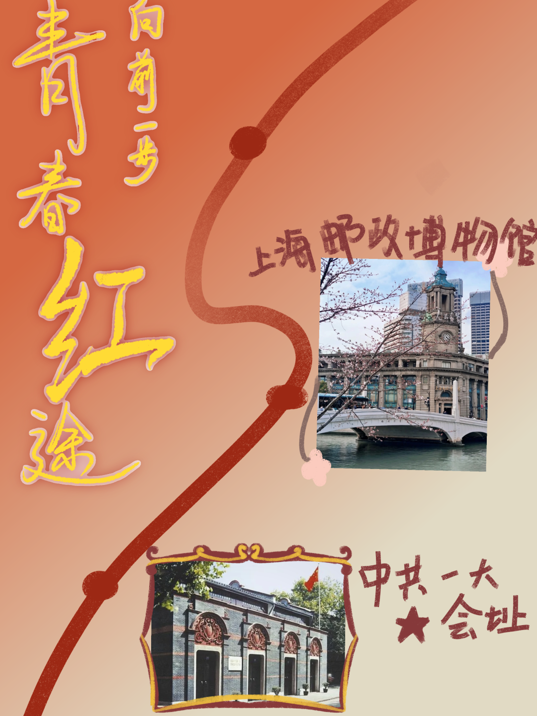 各团支部组织开展“青春红途 向前一步”的红色寻访活动,依托上海丰富的红色资源,打卡红色地标,学习红色历史、党团员先进事迹。最后以寻访笔记和文创作品的形式展示其学习成果。