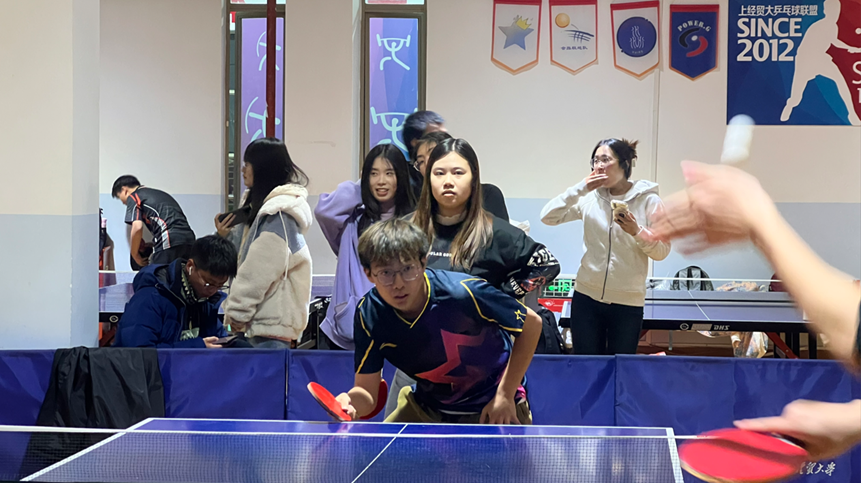 12月4日下午五点,我方统信学院乒乓球队与经贸学院乒乓球队进行了本学期第二阶段的第二场团体赛。本场比赛非常精彩,双方都拿出了较好的状态。最终我方以男单3:0,男双0:3,女单3:2,女双3:0,混双1:3,总比分3:2的成绩取得胜利。