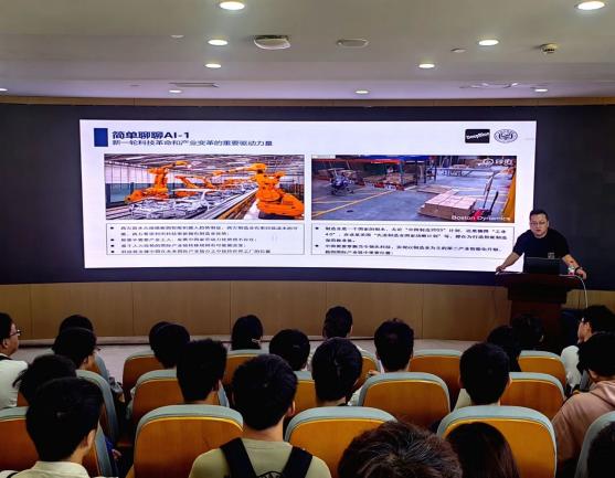 深兰科技联合创始人吴昊泽接待了学院一行,并对我院师生来访表示热烈欢迎。他带领师生走进深兰科技展厅,从发展历史、现有成果、核心技术、专业部门等方面全方位介绍了公司整体情况,并利用现场设备展示了智能驾驶、生物智能等科技成果。之后,他召开了《人工智能行业及专业讲解会》,详细介绍了人工智能当前的发展现状及就业前景,展示了智慧城市、轮腿机器人、AI智能形象等方面内容,帮助师生进一步了解智能领域创新产品与技术。此外,工作人员现场展示并讲解AI算法、AI程序、AI产品,将课堂知识延伸至企业应用,为同学们带来科技创新前沿资讯。