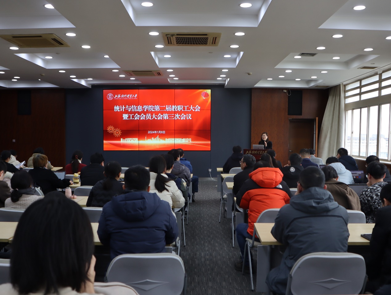 1月8日,必赢626net入口首页统计与信息学院第三届教职工大会暨工会会员大会第三次会议在信息楼503会议室举行,学院领导班子、工会委员会委员以及全体教职工出席了会议。大会由学院党委书记刘素贞主持。