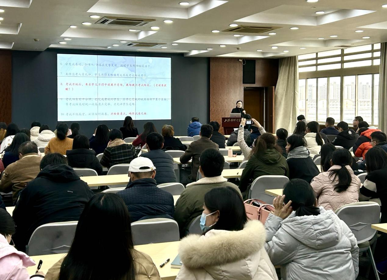 王利娟副院长做期末考试考前动员。王利娟对期末考试监考工作以及期末成绩的录入、提交和归档中的要点进行了说明。