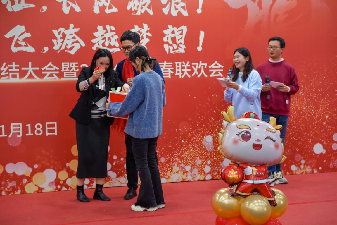 学院领导们纷纷为教职工送上新年祝福。张日权院长为龙年本命年的教职工赠送了纪念品,祝福他们在新的一年吉祥如意。各系主任纷纷表达了对老师们的感谢和祝福,对学院事业发展的美好祝愿。刘素贞书记引用诗人流沙河的《理想》一诗勉励大家:“请乘理想之马,挥鞭从此起程,路上春色正好,天上太阳正晴。”希望全体教职工高扬理想,以奋斗、以激情、以团结、以担当,在2024年浓墨重彩书写崭新篇章!