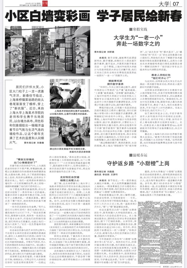 与此同时,回到家乡的大学生们也开展起一系列数字敬老活动,帮助老人提升新时代的数字技能。
