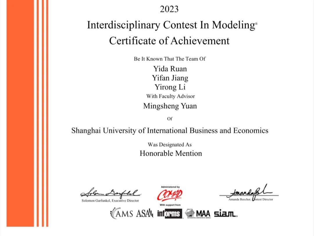江一凡学习态度端正,认真刻苦,树立明确的学习目标,严格落实学习计划。她的专业排名稳居前三,荣获优秀学生一、二、三等奖学金和优秀学科奖。课程学习之余,她注重专业知识的实践运用,积极参加各项学科竞赛,荣获美国大学生数学建模竞赛H奖、“互联网+”校赛铜奖等多个奖项。