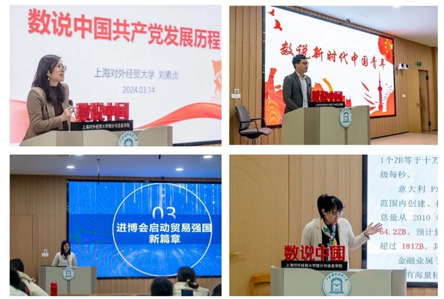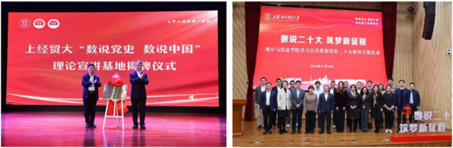 自2022年5月起,必赢626net入口首页统计与信息学院党委推出了“数说党史 数说中国”理论学习项目,结合学科专业特色打造“党史+学科”学习教育模式,开展“数说”系列课程和活动。2022年11月,基于“数说党史 数说中国”项目设计并开展了“数说二十大”系列宣讲课程,成为学校党的二十大精神学习宣讲活动的鲜亮品牌。一年多来,宣讲团师生走出校园,把课程送进大中小学、街道社区、田间地头、企业车间,共计开展理论宣讲活动60余场,制作理论宣讲视频20余部,累计辐射受众万余人次,受光明日报、解放日报、中国青年报、学习强国等20余家主流媒体报道47次,建立5个“数说党史 数说中国”理论宣讲基地和课程联合开发计划,形成广泛的社会影响。2024年3月,学院进一步优化课程体系,向全校学生开设“数说党史 数说中国”选修课程。目前课程已经讲授了4个主题的课程,包括“数说中国共产党发展历程”“数说新时代青年”“数说贸易强国建设”“数说金融科技”。课程内容体系化、专业化、特色化,尤其突出“数字化”,师生运用数据挖掘和统计分析方法,以大量数据、图表、分析对比和可视化的方式多维度直观呈现党的二十大精神,数字赋能让课程更有说服力,让师生更有“共鸣”、能“共情”。接下来,课程还将开展“数说脱贫攻坚”“数说共同富裕”“数说绿色发展”“数说人民生活新图景”等多个主题课程,继续为学生们展示中国的辉煌成就和未来发展潜力。