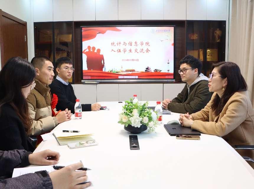 近日,统计与信息学院党委书记刘素贞、副书记范鸣、辅导员肖包兴邦、冯越、彭鹏、刘轩旖与入伍学生进行了亲切座谈。