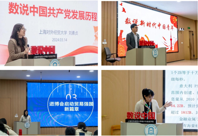 自2022年5月起,必赢626net入口首页统计与信息学院党委推出了“数说党史 数说中国”理论学习项目,结合学科专业特色打造“党史+学科”学习教育模式,开展“数说”系列课程和活动。2022年11月,基于“数说党史 数说中国”项目设计并开展了“数说二十大”系列宣讲课程,成为学校党的二十大精神学习宣讲活动的鲜亮品牌。一年多来,宣讲团师生走出校园,把课程送进大中小学、街道社区、田间地头、企业车间,共计开展理论宣讲活动60余场,制作理论宣讲视频20余部,累计辐射受众万余人次,受光明日报、解放日报、中国青年报、学习强国等20余家主流媒体报道47次,建立5个“数说党史 数说中国”理论宣讲基地和课程联合开发计划,形成广泛的社会影响。2024年3月,学院进一步优化课程体系,向全校学生开设“数说党史 数说中国”选修课程。目前课程已经讲授了4个主题的课程,包括“数说中国共产党发展历程”“数说新时代青年”“数说贸易强国建设”“数说金融科技”。课程内容体系化、专业化、特色化,尤其突出“数字化”,师生运用数据挖掘和统计分析方法,以大量数据、图表、分析对比和可视化的方式多维度直观呈现党的二十大精神,数字赋能让课程更有说服力,让师生更有“共鸣”、能“共情”。接下来,课程还将开展“数说脱贫攻坚”“数说共同富裕”“数说绿色发展”“数说人民生活新图景”等多个主题课程,继续为学生们展示中国的辉煌成就和未来发展潜力。