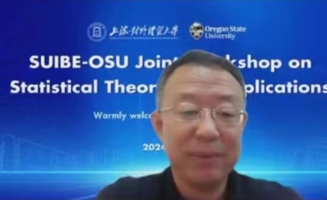 张日权代表统计与信息学院致辞。他向来自俄勒冈州立大学的专家表示热烈欢迎,希望学院与俄勒冈州立大学统计系在科学研究和人才培养方面开展充分交流和广泛合作,同时期待此次研讨会为双方师生搭建学术交流的平台,为合作创新奠定基础,为共同推动统计学科的高水平发展携手奋进。