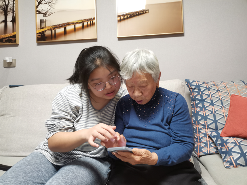 张艺琳同学手把手教导老人如何使用手机中的相机去拍照、记录生活;如何在手机上听歌;如何在手机上看电视电影、并且投屏至电视上;如何用手机在小区内进行电动车充电。另外,她还教会老人使用健康管理App,这样就能用手机等电子设备测量血压,关注日常健康。