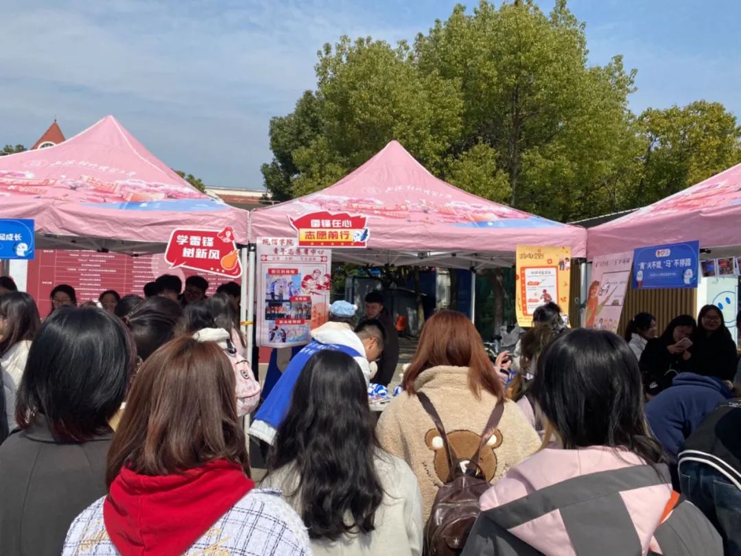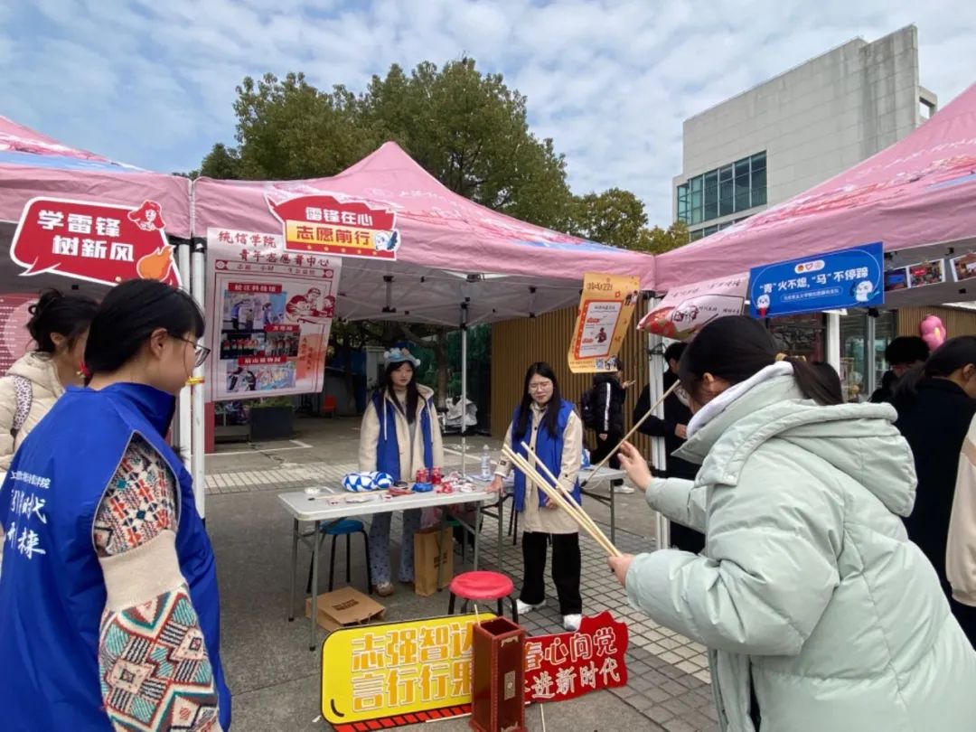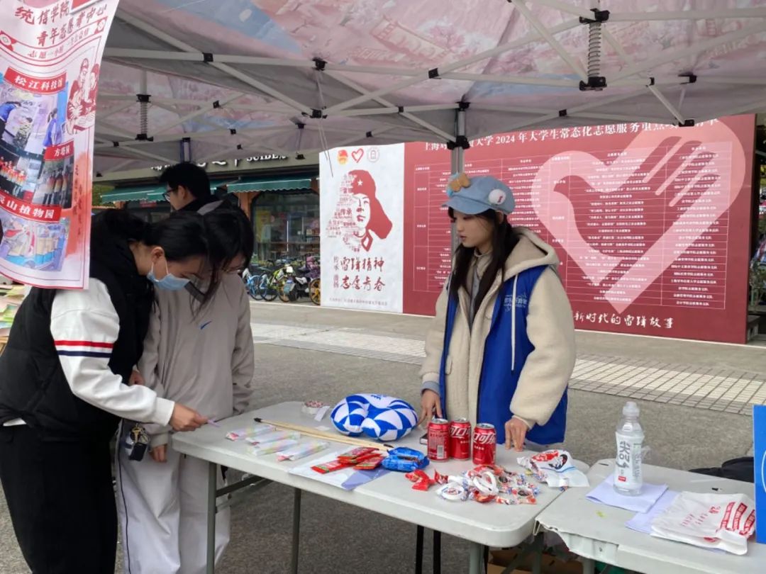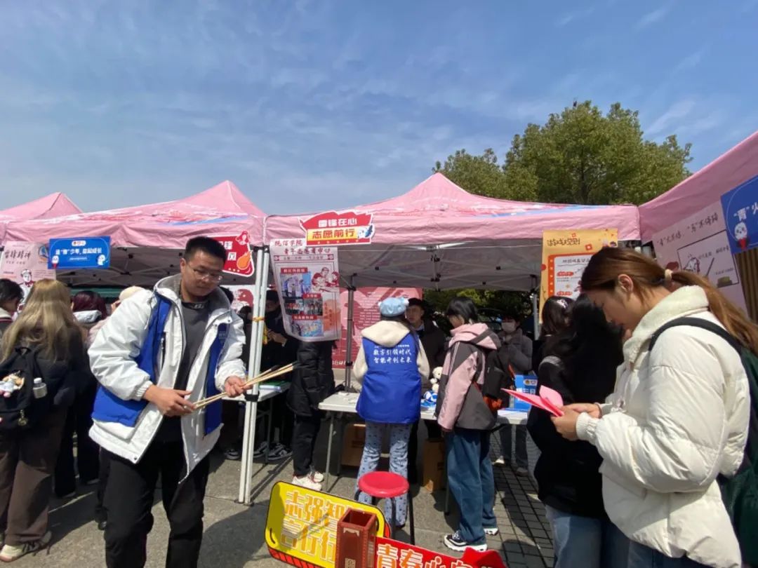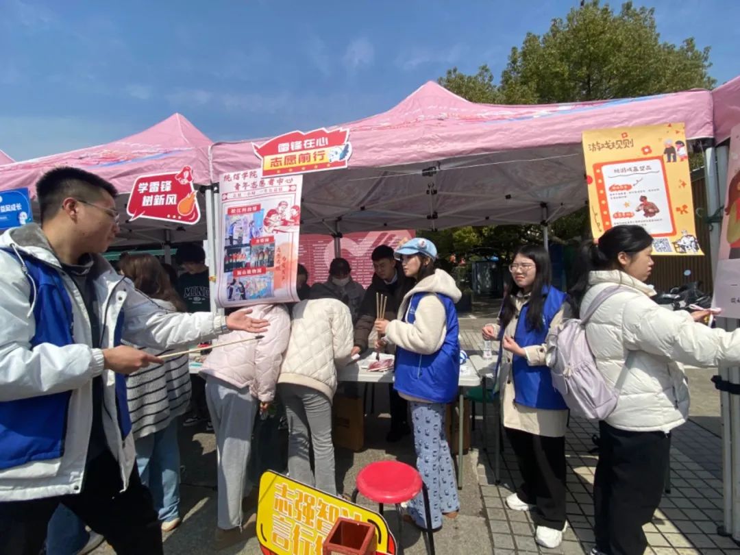 雷锋活动月的摆摊活动如火如荼地举行,青年志愿者中心的摊位面前人山人海。