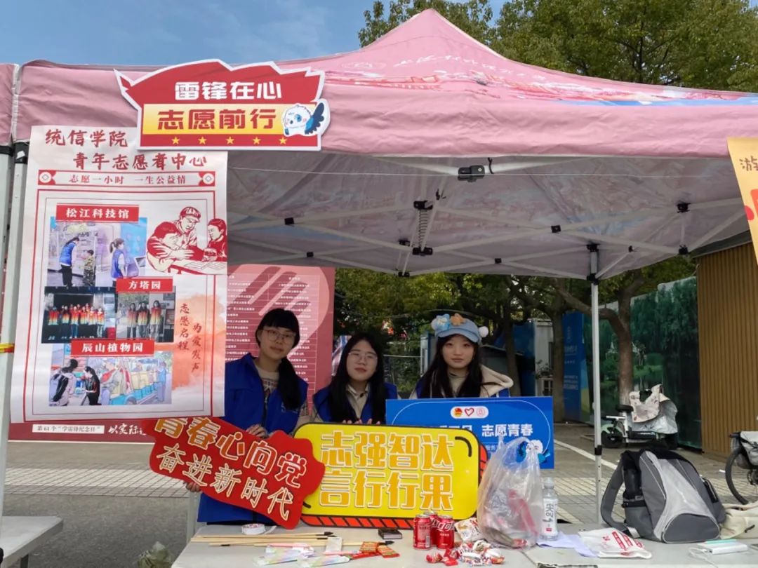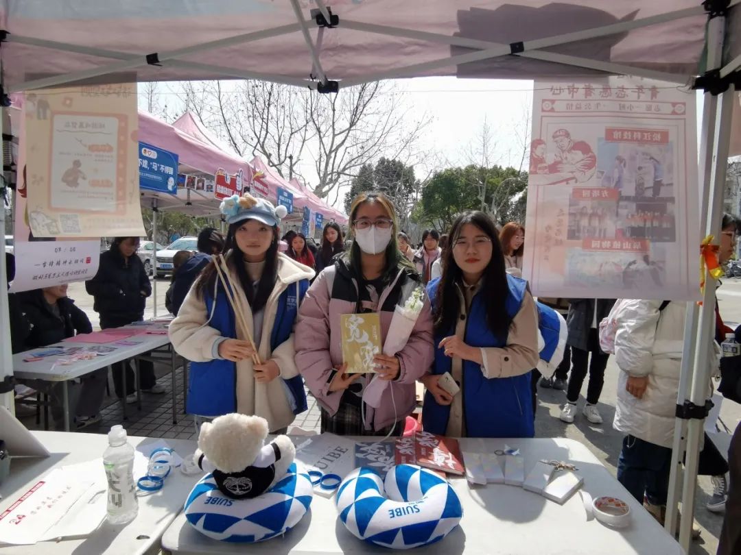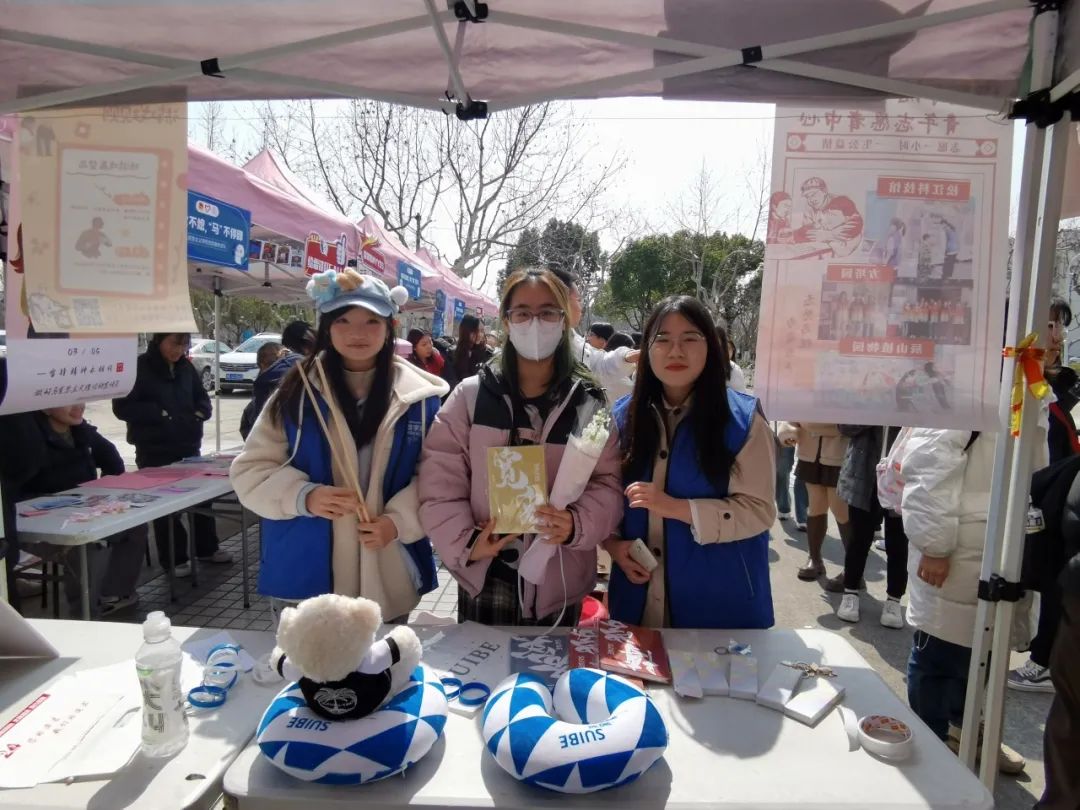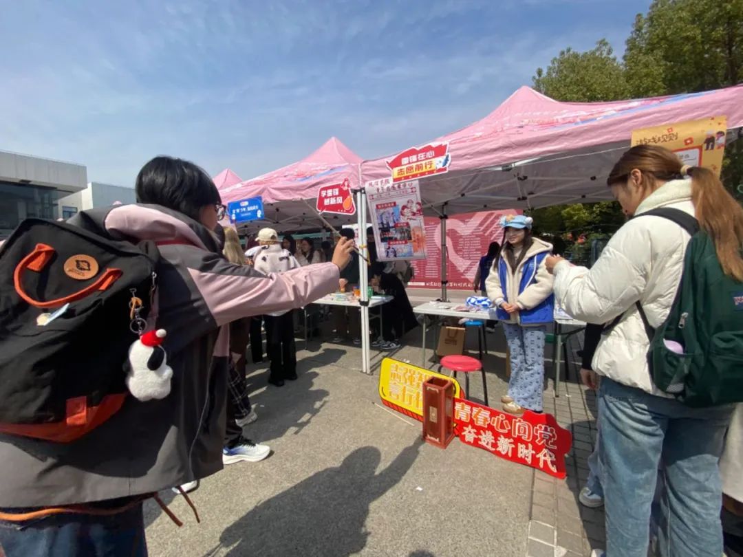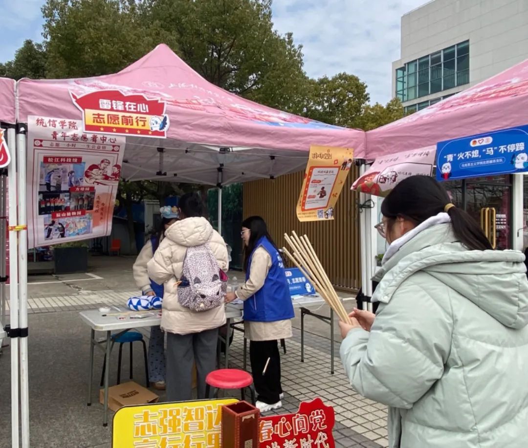 雷锋活动月的摆摊活动如火如荼地举行,青年志愿者中心的摊位面前人山人海。