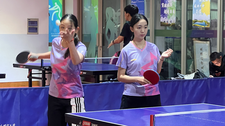 本周女子双打我方派出费嘉怡、黄菲同学迎战。两人配合十分的默契。在开局时便占领优势,赢得第一局。在第二局时,对方迅速调整状态,适应打法,但我方选手依旧保持冷静,乘胜追击,最终我方以总比分3:0赢得胜利。