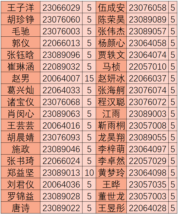 志愿者同学:社会实践学时(见下表)