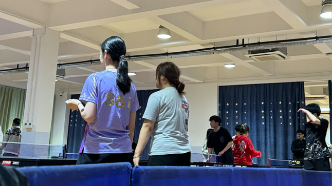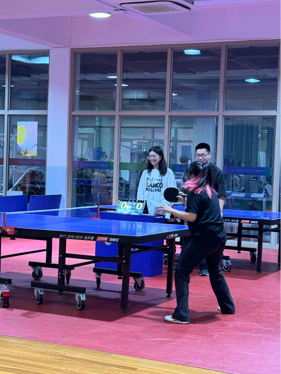 本周的女子单打比赛我方派出了许嘉麟同学。第一局中,许嘉麟同学发挥稳定,开局球速快,攻击力强,但对手实力强劲,我方后局失误较多,输掉第一局。在接下来的两局中,对方略有紧张,出现了发球未过网以及接球出界等的小失误,被我方抓住机会,我方连赢两局。然而对方迅速调整状态展开强势的攻击。最终我方2:3输掉比赛。