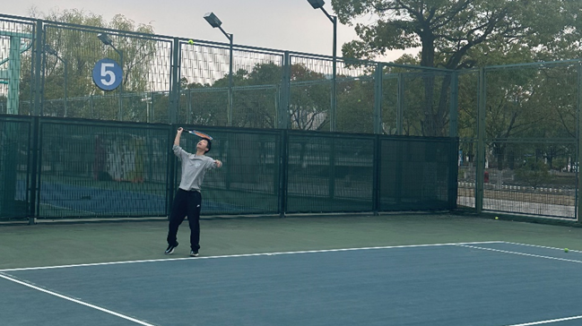 第四场是男子双打比赛,我方派出选手俞菁涛和辜攀霖,选手配合默契,稳扎稳打,以6:0的比分赢下了这场比赛。
