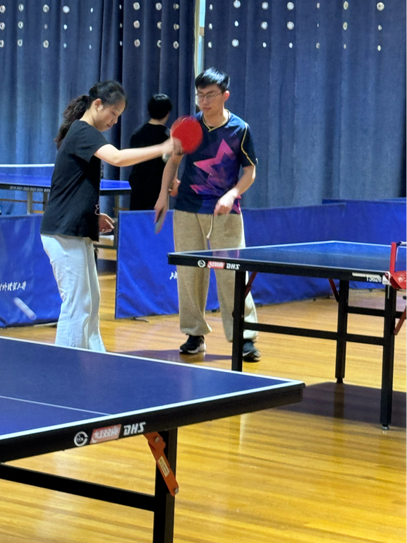 在本周的混合双打比赛中,我方派出了费嘉怡、吴正洋同学。第一局中,因为两位同学在赛前做了充足的准备,他们积极调整状态以应对对方的节奏与发球的变化,但对方实力强劲,连续拿下两局。在第三局中,我方也不甘示弱,逐渐找回了状态。双方在比分不分上下,我方最终成功扳回一局。第四局中我方失误较多,不敌对方,最后以比分1:3遗憾落败。