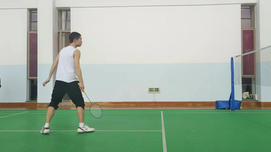 第一场是男子单打比赛,我方上场的付茂源,作为一名“老”队员,付茂源在此场比赛中得心应手,频频打出好球,使得对手反应不及,迅速拿下本场比赛,最后毫无悬念21:10取得胜利。