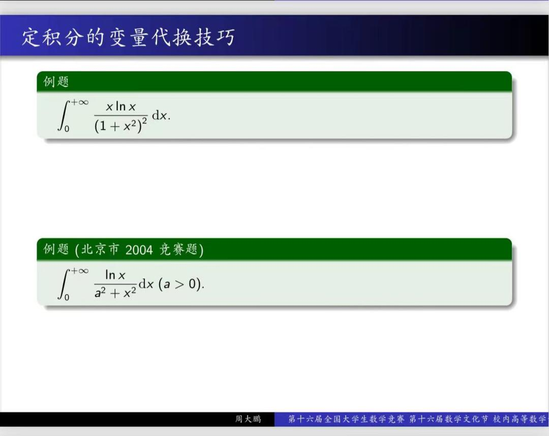 例如:定积分的变量代换技巧。题目上是求0~无穷的积分,做题时可以换成求无穷~0的积分,即x换成倒数的形式,更便于计算。当分母有常数时,代换倒数的时候需要把常数代入到倒数,计算过程会更加清晰,简洁。