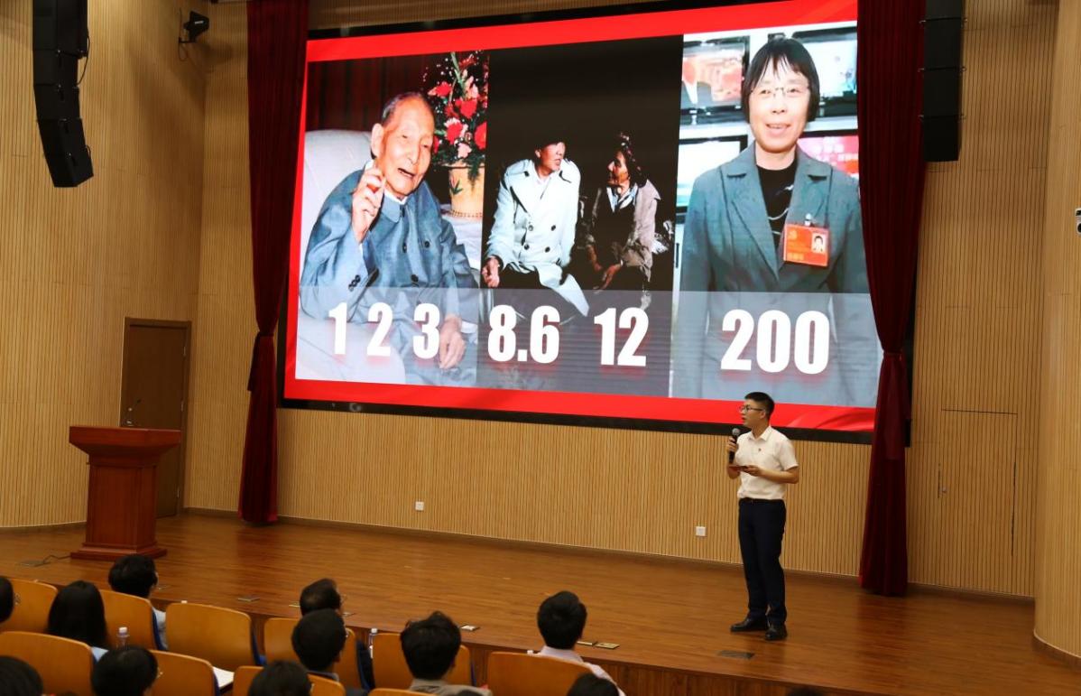 统计与信息学院团委副书记、辅导员彭鹏讲授“数说廉洁故事”微党课。他通过一组组数字引入陈云、孔繁森、张桂梅等党员同志的清廉事迹,深情讲述数字背后优秀共产党员们廉洁奉公、全心为民的故事,表示要学习他们的清廉精神,从思想上固本培元,始终树牢宗旨意识,廉洁自律,敢于担当,担负起民族复兴重任。