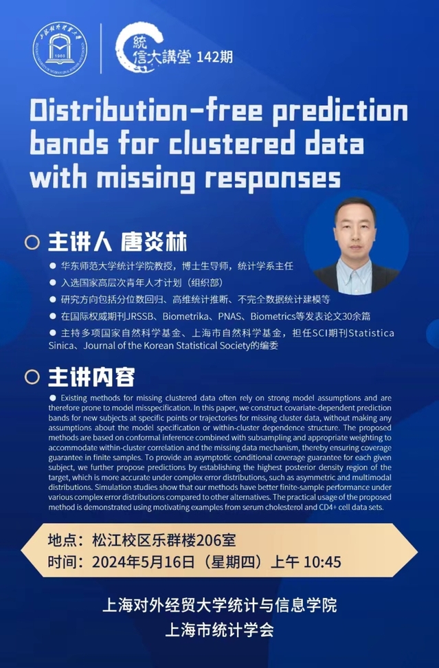 05.16 142 Distribution-free prediction bands for clustered data with missing responses