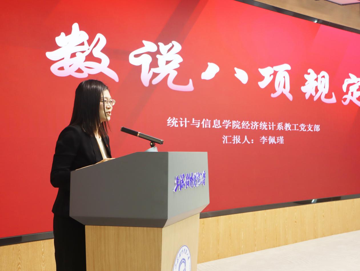为深入学习习近平总书记关于全面加强党的纪律建设的重要论述,推进党纪学习教育走深走实,鼓励师生结合学科专业特色,以数字为密码讲述党的纪律建设和中国共产党人的廉洁精神,在校党委组织部、纪委、宣传部的指导下,统计与信息学院与国际组织学院(贸易谈判学院)党委于6月14日在松江校区联合举办“迎七一 学党纪 铸党魂”——“数说党纪”微党课展示活动。活动邀请校党委常委、组织部部长陈加林,纪委副书记徐佳,党委宣传部副部长谢峰,东华大学纺织学院党委书记李佳耀,华东政法大学党委组织部副部长钱嘉熙,市教卫工作党委组织干部处干部姜舒婷担任评委。活动由统计与信息学院、国际组织学院(贸易谈判学院)党委书记刘素贞主持。