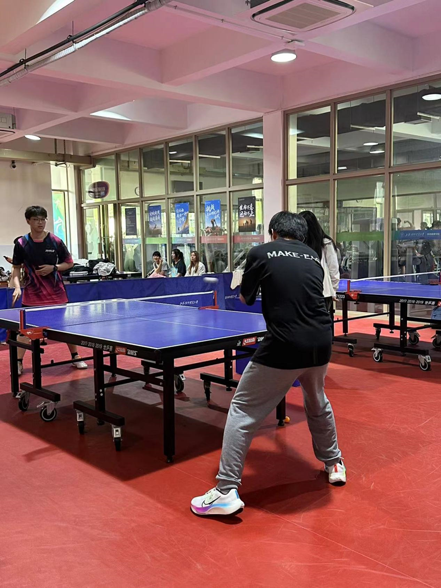 5月13日下午5点,我方统信学院乒乓球队与会传学院乒乓球队进行了本学期第二阶段的第二场团体赛。本场双方比赛非常精彩,双方都拿出了较好的状态。最终我方以男单0:3,混双0:3,女单3:0,女双3:0,男双1:3,总比分2:3的成绩遗憾落败。
