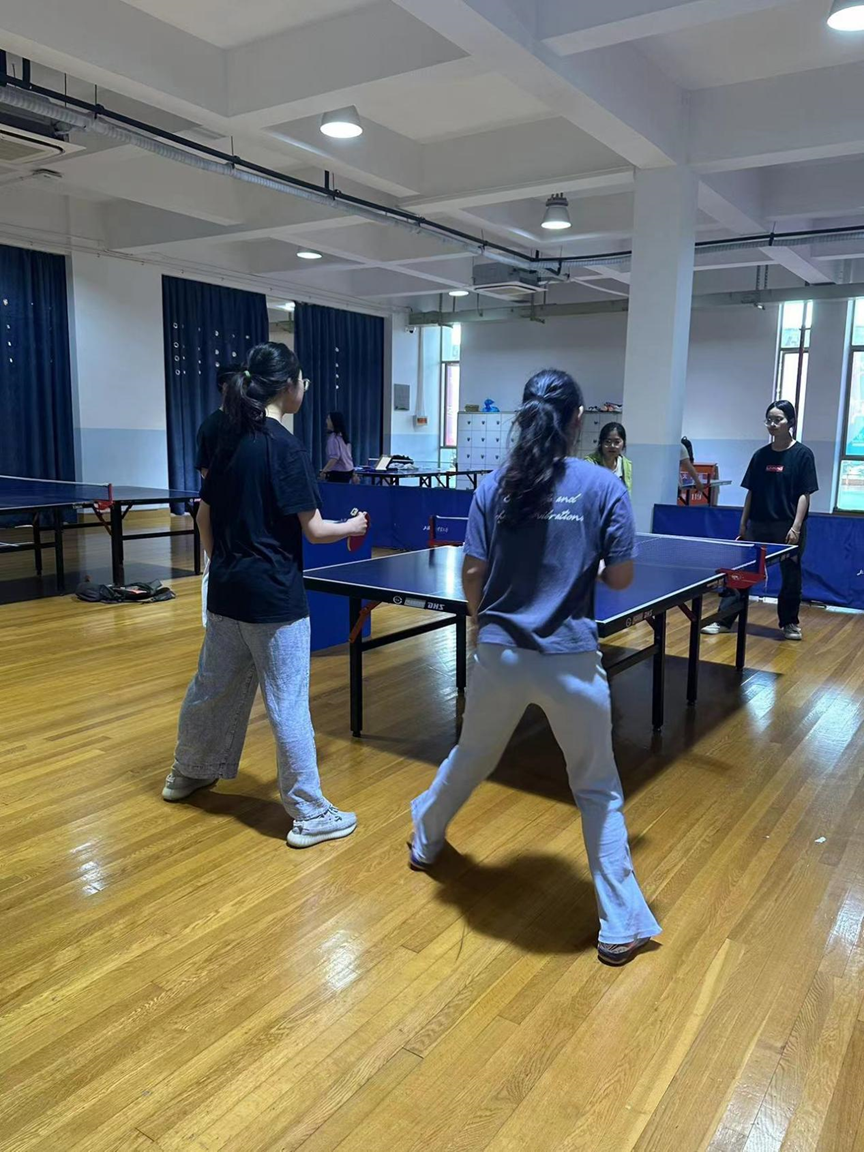 第四场是女子双打比赛,我方派出费嘉怡、黄菲同学迎战。两人配合十分的默契。我方实力强劲在开局时便占领优势,赢得第一局。在第二局时,我方迅速调整状态与更好的打法,对方选手失误频发,我方持续发力,最终我方以3:0取得胜利。
