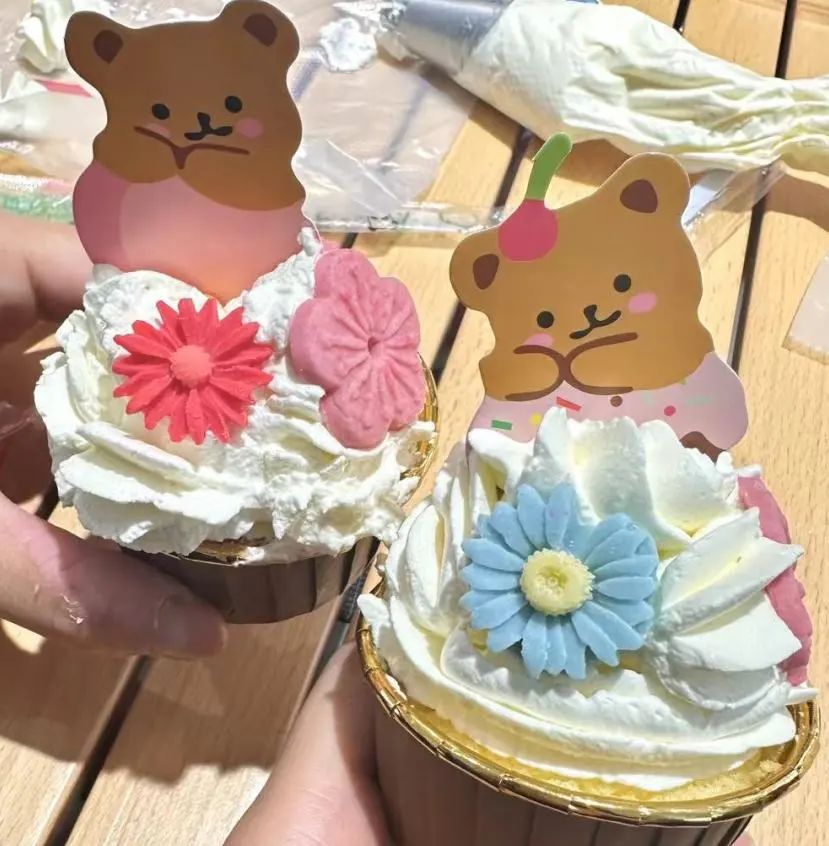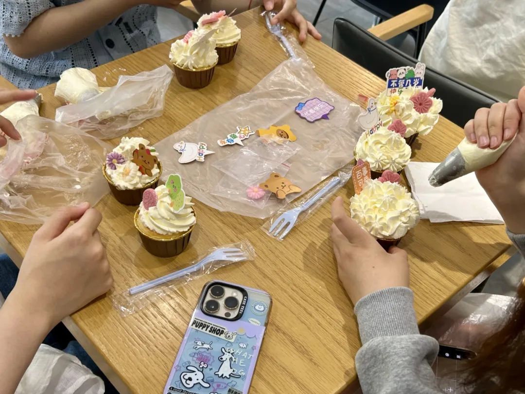 在学习了制作纸杯蛋糕的相关知识后,同学们自己动手,用奶油和图案,创造出许多独具特色的纸杯蛋糕。