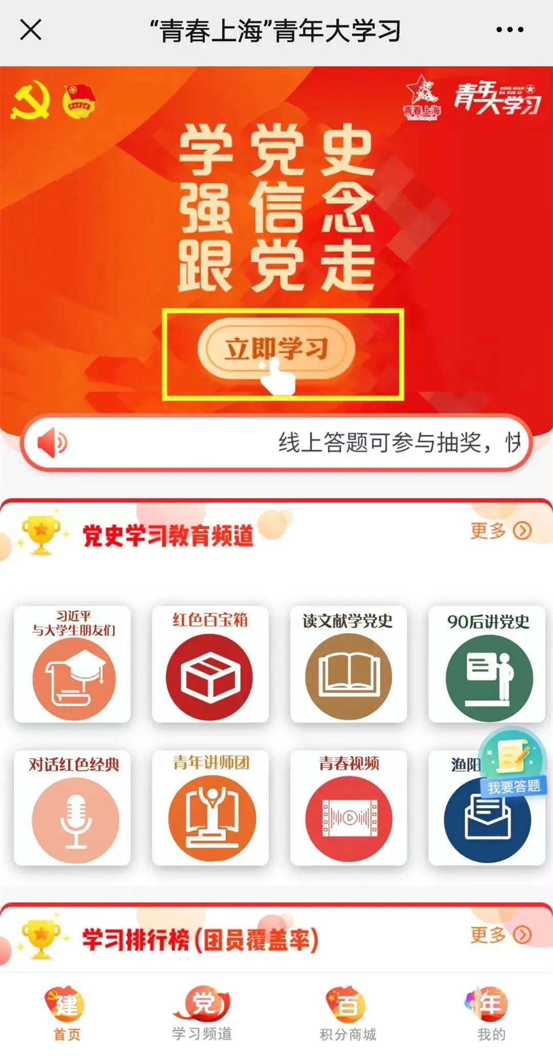 2、点击首页的“去学习”,跳转至青年大学习页面进行学习。