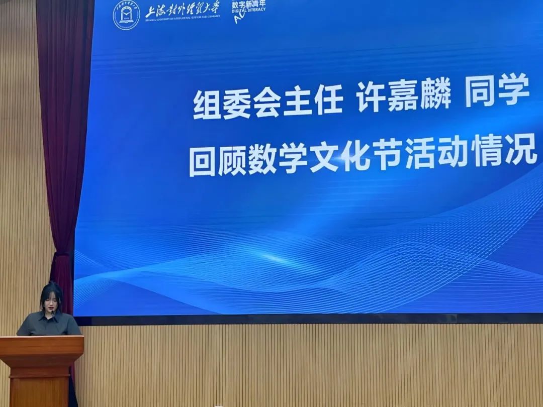 数学文化节组委会主任许嘉麟同学总结回顾文化节的相关活动。她介绍,从3月开幕以来,本届数学文化节共举办知识型数学赛事、数学文化宣传活动、创新数字感悟体验活动、数学辅导分享会等15场活动,通过学术竞赛、技能培训、文化体验等方式,共同营造学数学、用数学、爱数学的良好校园氛围。