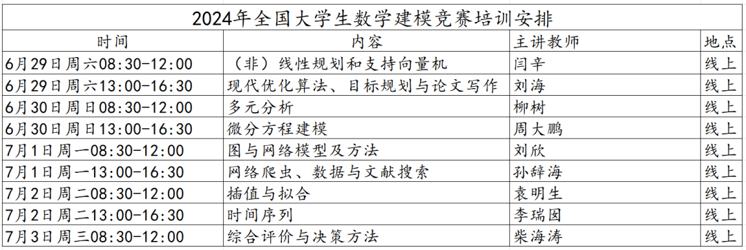 2.培训内容重要,请晋级校内选拔赛的小组务必全勤参加,鼓励对数学建模感兴趣的同学们积极参与。