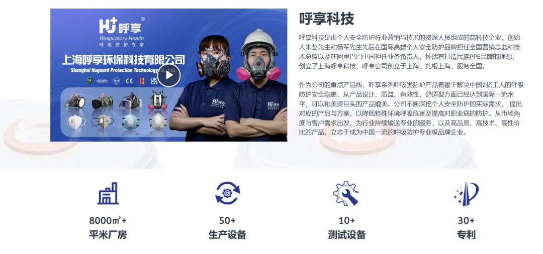 上海呼享环保科技有限公司是由个人安全防护行业营销与技术的资深入员组成的高科技企业。公司的呼吸类防护产品着眼于解决中国2亿工人的呼吸防护安全隐患,在产品设计、质量、有效性、舒适性方面已经达到国际一流水平。公司不断深挖个人安全防护的实际需求,为行业持续输送专业的服务,以及高品质、高技术、高性价比的产品,立志成为中国一流的呼吸防护专业级品牌企业。