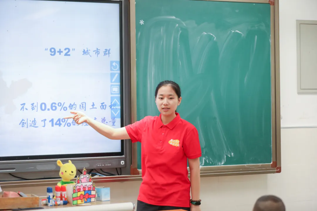 于小雪不仅介绍了粤港澳大湾区的地理、文化和经济优势,还通过具体的数据展示了这一区域的重要性和发展潜力。她提到,2023年粤港澳大湾区经济总量突破14万亿元人民币,以不到全国0.6%的国土面积,创造了全国约11.1%的经济总量,并与长江三角洲作为参考展开对比。她特别提到港珠澳大桥这一世界级的工程奇迹,120年、55公里、42万吨……一系列具体而震撼的数字展现了中国桥梁建设者们的智慧与实力。演讲最后,于小雪阐述了粤港澳大湾区将继续保持强劲的发展势头和创新能力,并呼吁小朋友们共同参与进来,为实现中华民族伟大复兴贡献力量。