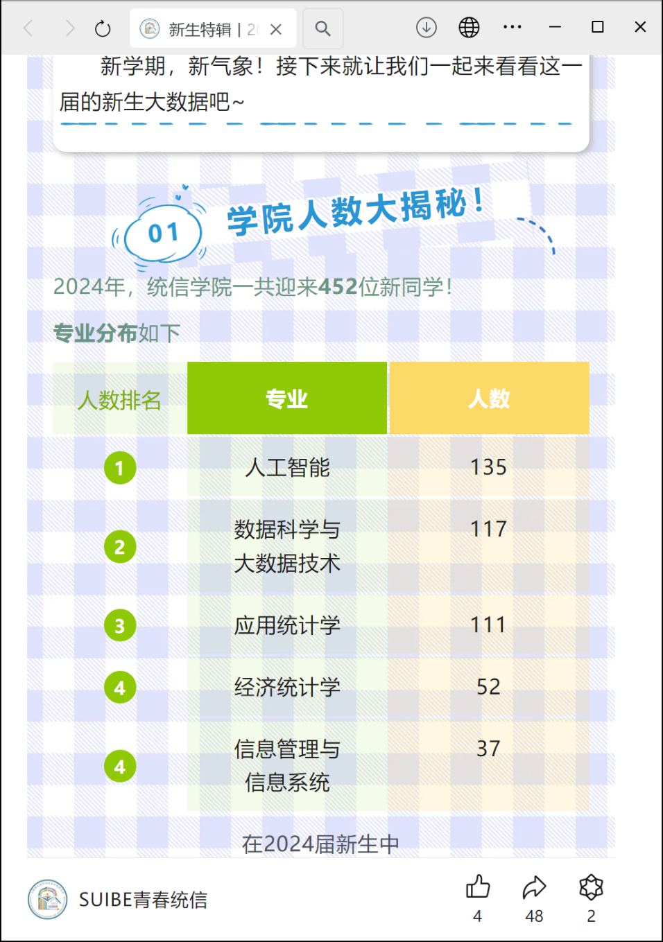 噔噔噔!统信学院2024级百家姓榜单新鲜出炉!