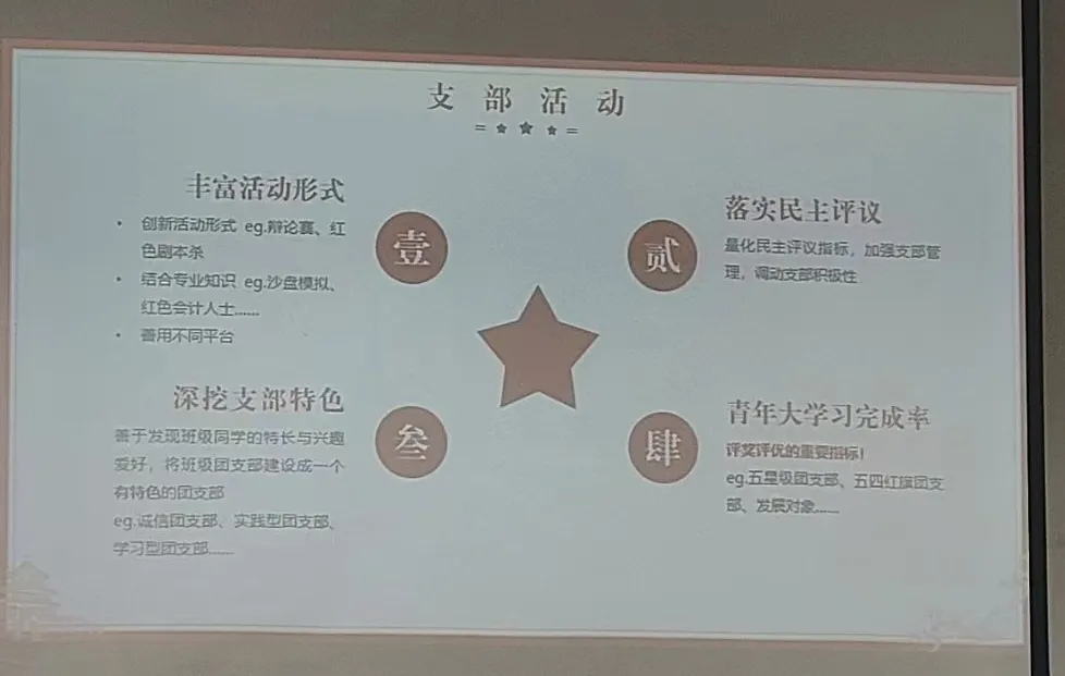统计与信息学院团委组织部负责全院共青团员思想教育支部建设制度制定及内部考核