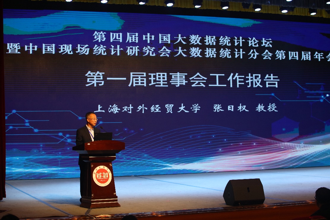 开幕式后,举行了中国现场统计研究会大数据统计分会理事换届会议。张日权作为中国现场统计研究会大数据统计分会理事长作第一届理事会工作报告。他回顾了中国现场统计研究会大数据统计分会的发展历程和主要贡献,展望了学会未来的发展方向和发展趋势,倡议以应用场景为驱动,推进大数据统计理论、方法与应用研究,共同促进学会和统计学科的高质量发展。