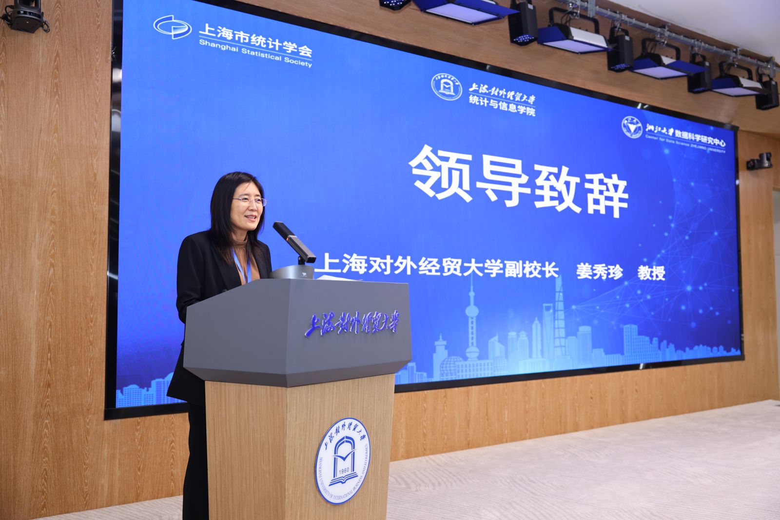 姜秀珍代表学校向与会专家学者表示热烈欢迎,向上海市统计学会、浙江大学数据科学研究中心以及兄弟院校对必赢626net入口首页统计学科发展的关心和支持表示衷心感谢。她简要介绍了学校的发展历程和学科的建设情况。她提到,统计学科是学校开放型经济学科群的重要构成,在交叉学科建设和跨领域科学研究中发挥着关键作用,随着统计学博士点的获得,学校在双轮发展战略驱动下构建起了特色鲜明、优势突出的本硕博一体化人才培养体系。学校将以统计学一级学科博士点建设为契机,以服务国家高水平开放和上海城市发展为牵引,支持学院创新人才培养模式、提升科研核心竞争力、激发教师干事创业动能。同时希望与会专家和学者分享最新学术成果,开展充分学术交流,共同促进统计学科的高质量发展。
