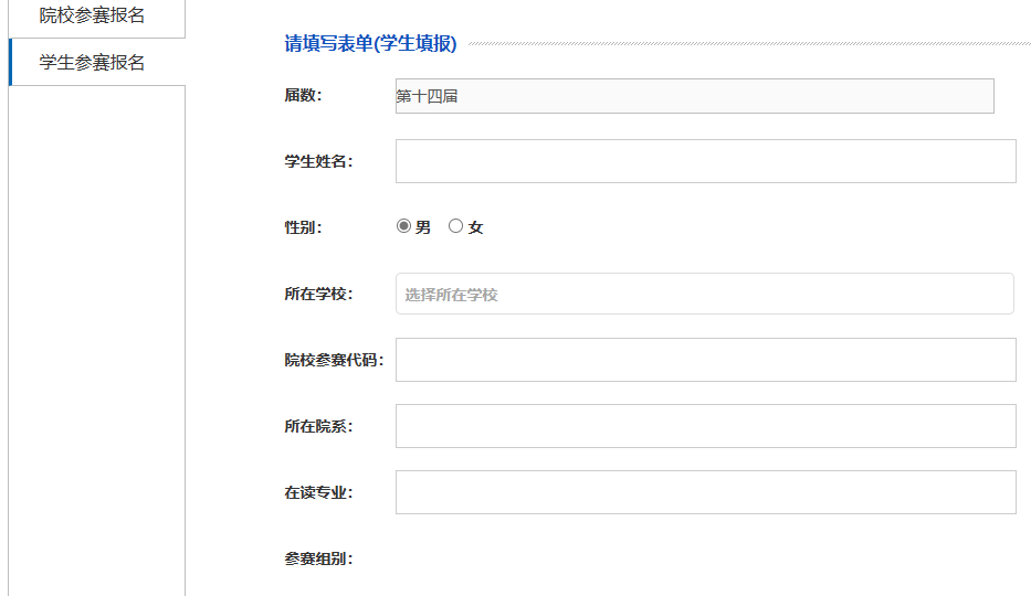 注意:参赛学生请务必选好自己所在的参赛组别,填写常用手机号。